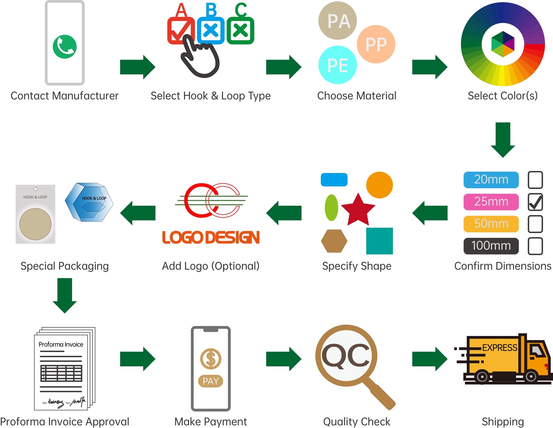 感谢您对我们定制钩环扣产品的关注。为了确保您获得清晰高效的体验,我们已将标准订购流程概述如下。这一透明的工作流程将指导您从最初的联系到最终的交付。
