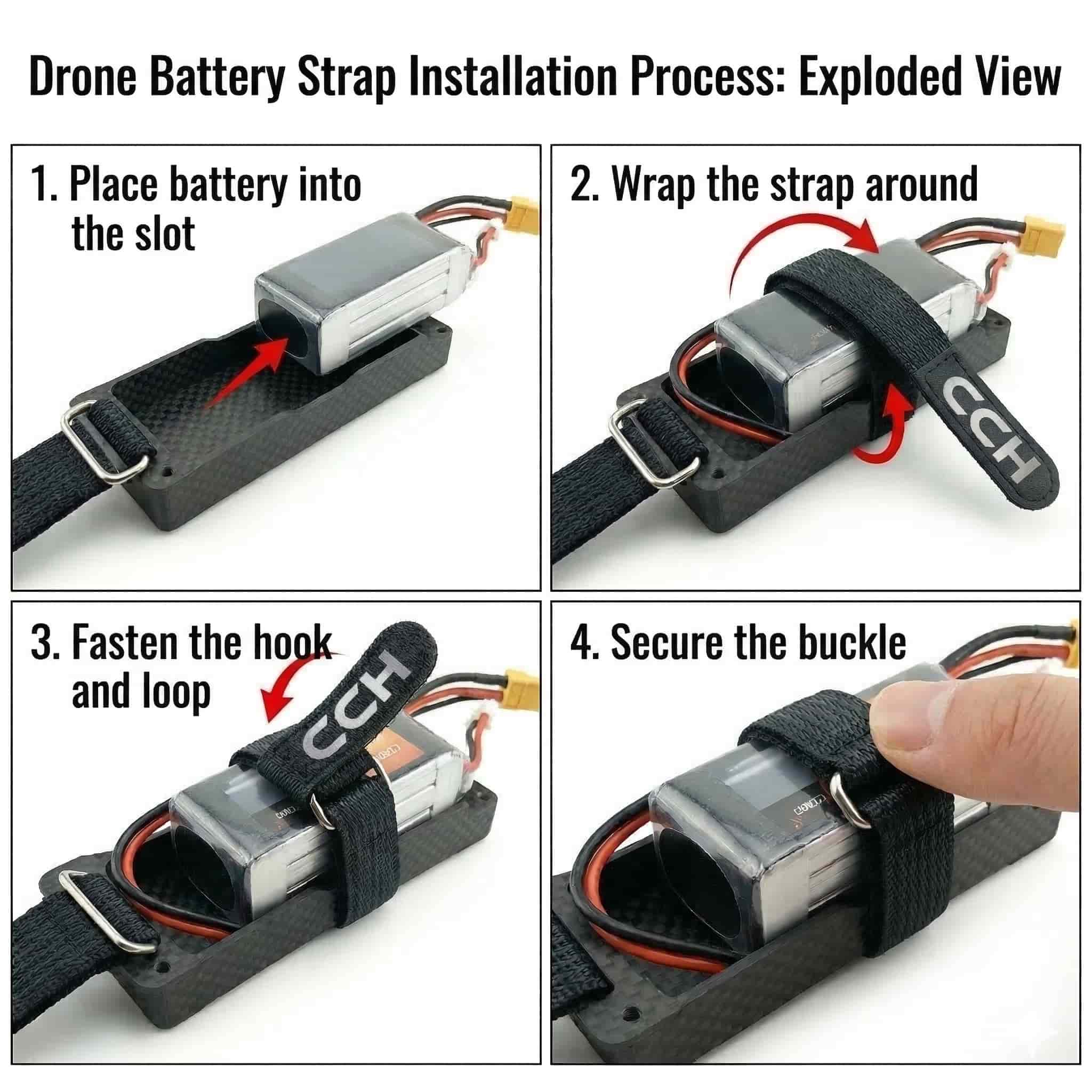防滑表面确保电池牢固固定,即使在激烈的操控或高速FPV竞速中也能保持稳定。可重复使用且可调节的绑带设计,方便安装和拆卸,是专业用户和业余爱好者的理想之选。